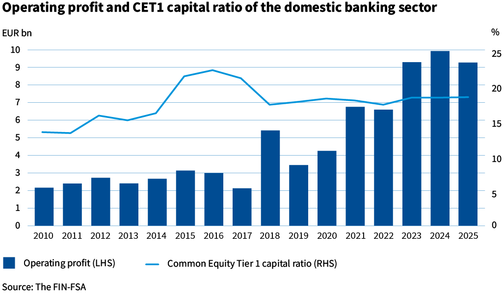 In 2025, the operating environment of the Finnish financial sector was characterised by rapid changes in international geopolitics and trade policy as well as weak domestic economic development. However, strong capital adequacy shielded the financial sector from the high risks in the operating environment.