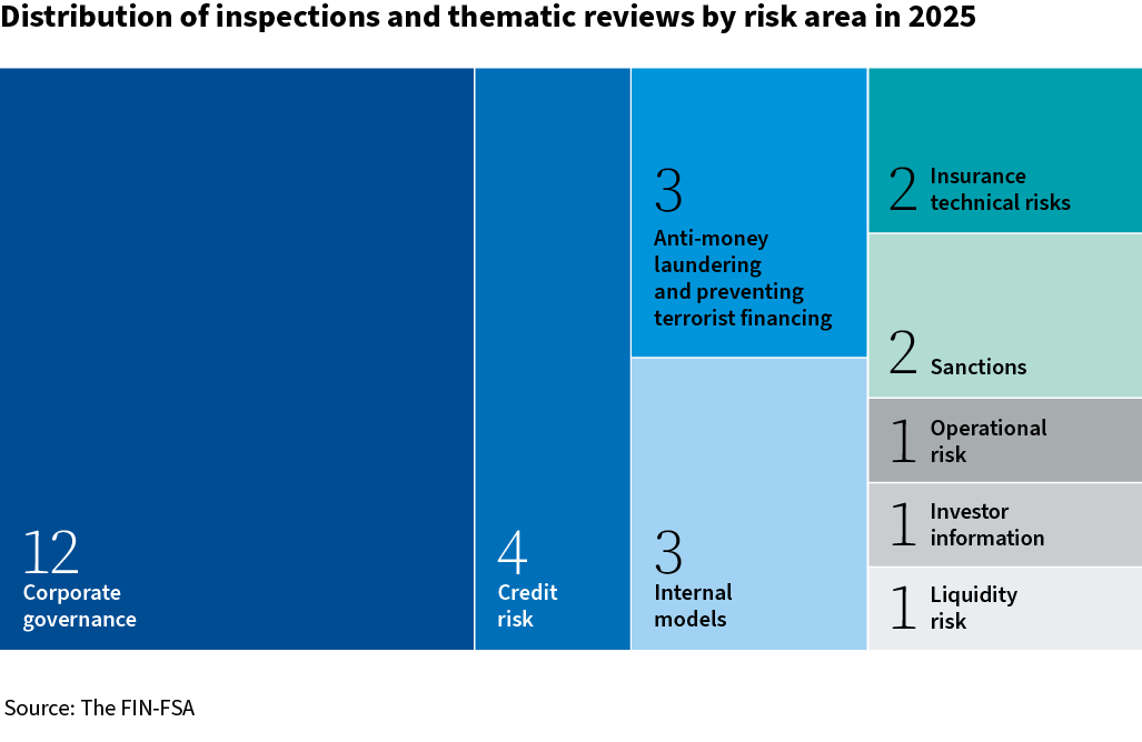 In 2025, the FIN-FSA focused its thematic reviews of banks on credit risk and lending-related themes. Additionally, inspections focused on reliable corporate governance and the use of internal models.